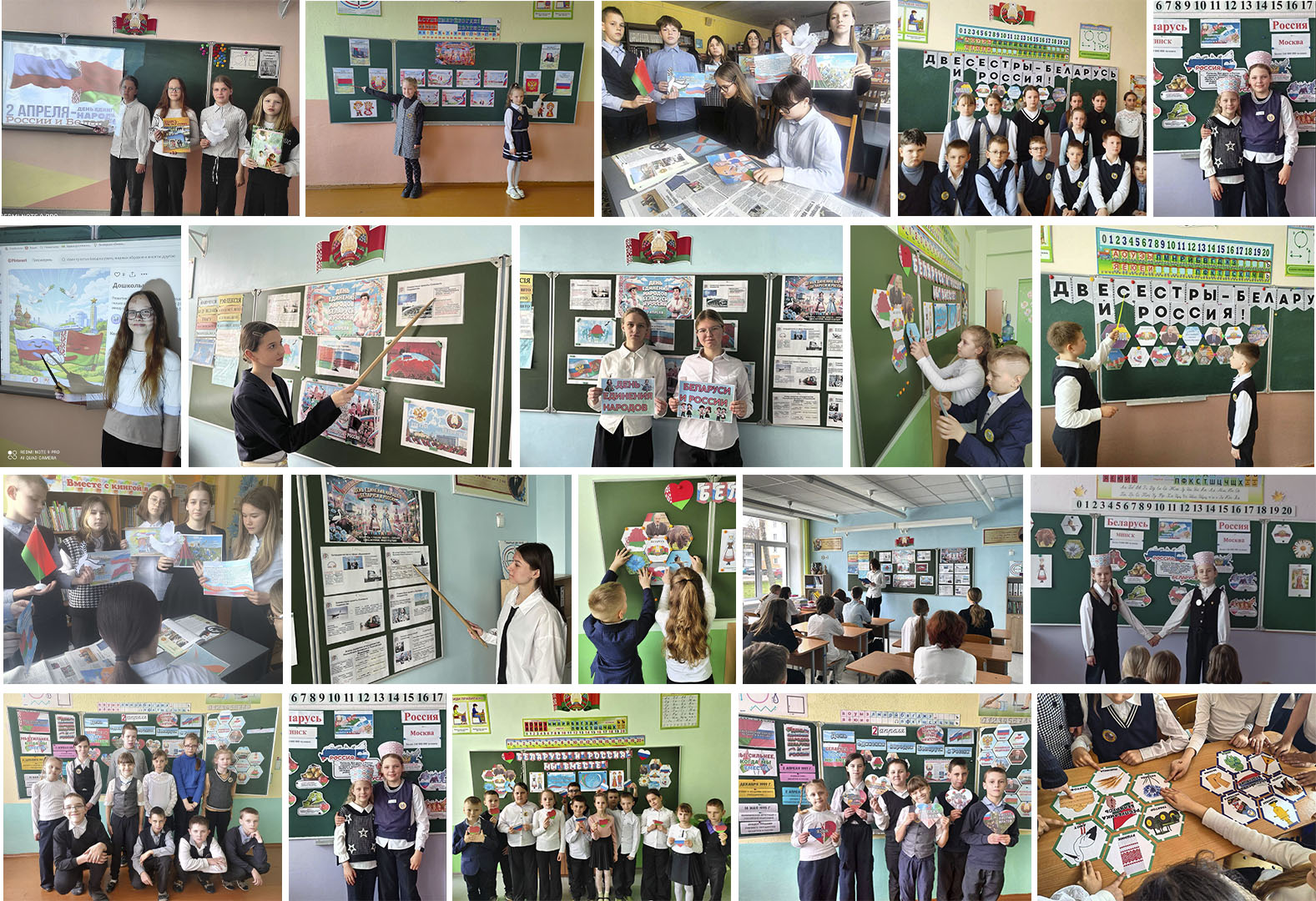 Педагоги рассказали учащимся об истории создания Союзного государства, о духовных ценностях, объединяющих наши народы , провели для ребят виртуальную экскурсию по достопримечательнастям Беларуси и России , а также отметили общность культур и единый вектор развития двух братских стран