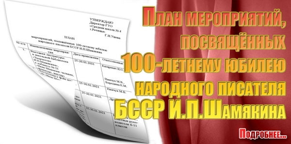 План мероприятий, посвящённых 100-летнему юбилею народного писателя БССР И.П.Шамякина