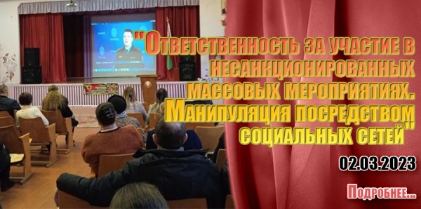 02.03.2023 в Средней школе № 4 г. Речицы прошло  общешкольное родительское собрание по  теме "Ответственность за участие в несанкционированных массовых мероприятиях. Манипуляция посредством социальных сетей". Родителям довели до сведения влияние молодежных субкультур на подрастающее поколение, дана правовая оценка факта организации действий, грубо нарушающих общественный порядок.