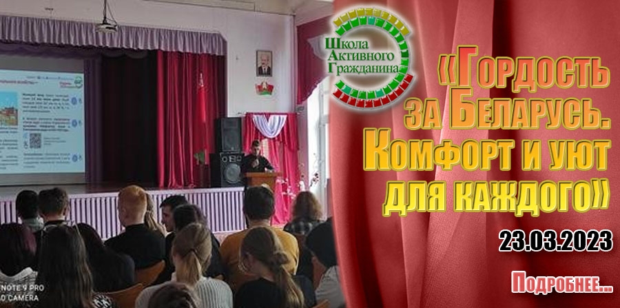 23.03.2023 для учащихся 8-11 классов прошёл информационный час в рамках образовательного проекта «Школа Активного Гражданина» по теме «Гордость за Беларусь. Комфорт и уют для каждого» (развитие и совершенствование строительно-промышленного комплекса, жилищного строительства, реализация государственной политики в жилищно-коммунальном хозяйстве). В ходе информационного часа учащиеся получили знания о том, что строительная отрасль является одной из самых значимых в экономике нашей страны. Также ребята обсудили проблему развития жилищного строительства в Беларуси и сделали акцент на том, что оно является приоритетным направлением деятельности строительного комплекса.