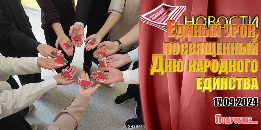 Единый урок, посвященный Дню народного единства, прошел 17 сентября в ГУО «Средняя школа №4 г.Речицы». Он помог осознать юным гражданам смысл и значение важного исторического события.