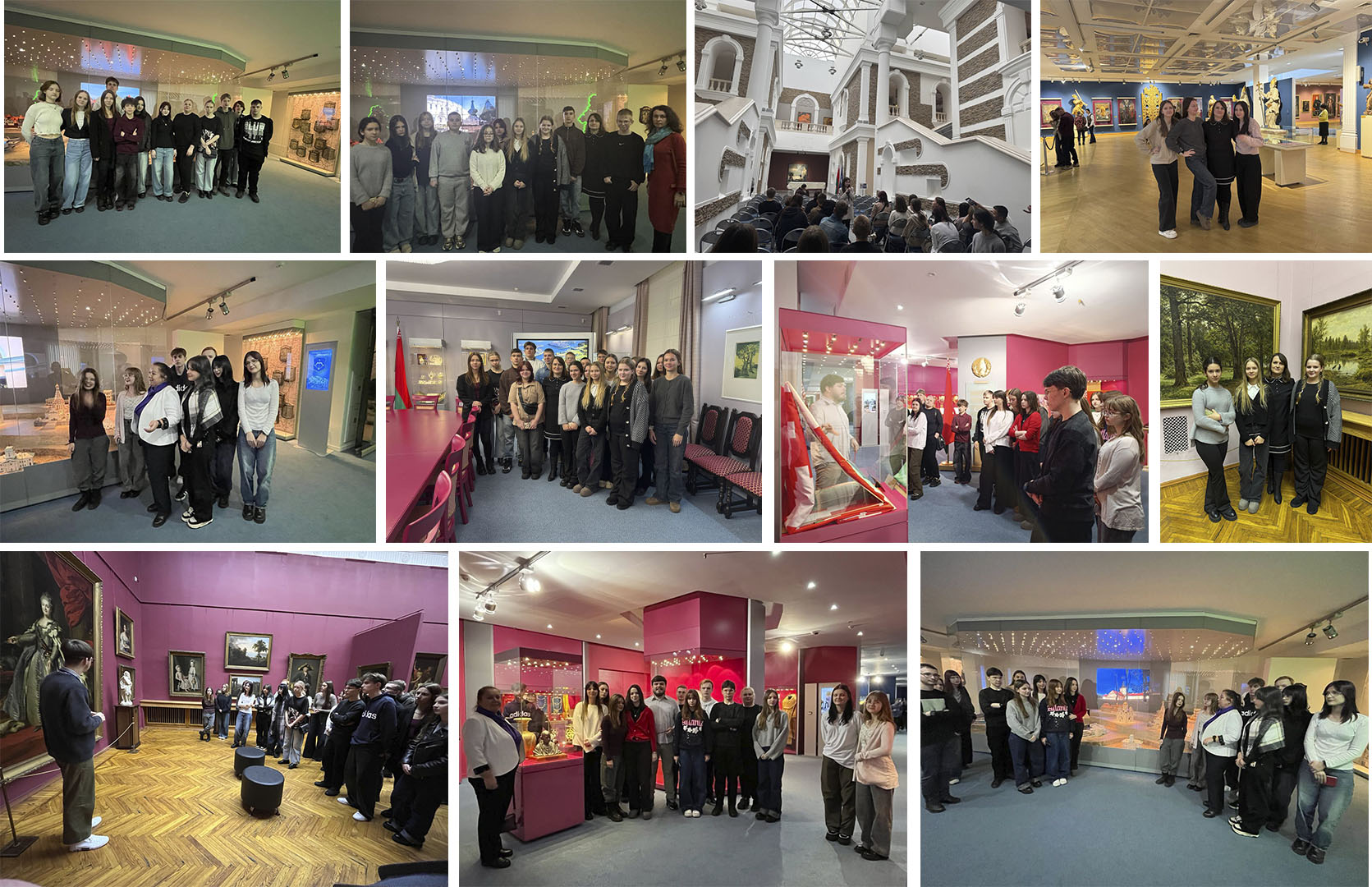 Четвертый зал знакомит с этноконфессиональным положением в стране, а также с различными аспектами внешней политики Беларуси. Среди музейных экспонатов данного зала - подарки Президенту от иностранных делегаций и многое другое. В музее располается конференц- зал, который предназначен для временных выставок, интерактивных и патриотических мероприятий, также для переговоров  иностранных делегаций. Следующим объектом посещения стал Национальный художественный музей. Он является важной культурной пощадкой в сердце Минска, которая с 1975 года радует запоминающимися выставками и яркими проектами. Монументальное здание музея - это место с большой историей, где живут вдохновение и любовь к искусству.
