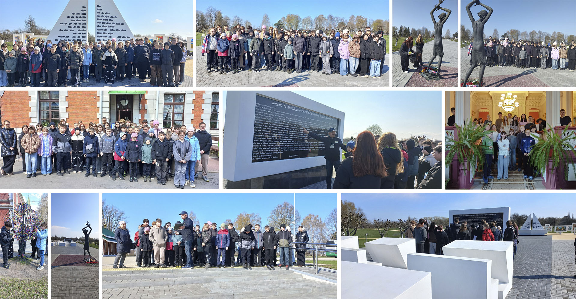 13 апреля 2026 года учащиеся СШ 4 посетили мемориальный комплекс "Детям - жертвам войны" и музей-усадьбу Козелл-Поклевских в Красном Береге.Учащиеся узнали о концлагере - донорском пункте,где детей заставляли сдавать кровь для фашистских солдат,увидели скульптуру девочки-подростка в центре яблоневого сада,символизирующую погибших детей,белые парты и классную доску с письмом-завещанием 15-летней Кати Сусаниной,белый парусник-детские мечты,которым не суждено было сбыться.